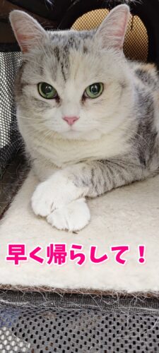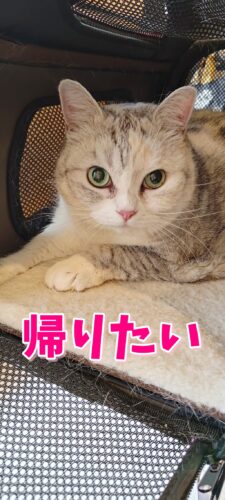 早く帰りたいと目で訴えるくぅ。